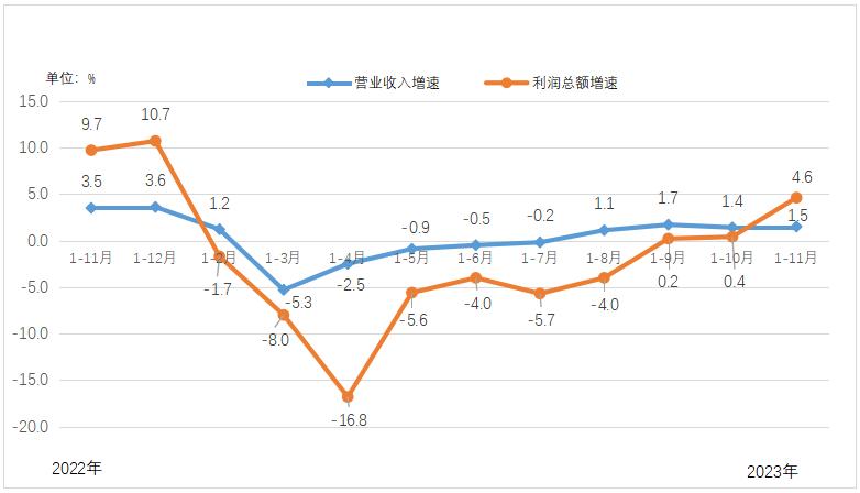 二、规模以上工业企业利润总额、营业收入等指标的增速均按可比口径计算。报告期数据与上年所公布的同指标数据之间有不可比因素,不能直接相比计算增速。其主要原因是:(一)根据统计制度,每年定期对规模以上工业企业调查范围进行调整。每年有部分企业达到规模标准纳入调查范围,也有部分企业因规模变小而退出调查范围,还有新建投产企业、破产、注(吊)销企业等变化。(二)加强统计执法,对统计执法检查中发现的不符合规模以上工业统计要求的企业进行了清理,对相关基数依规进行了修正。(三)加强数据质量管理,剔除跨地区、跨行业重复统计数据。