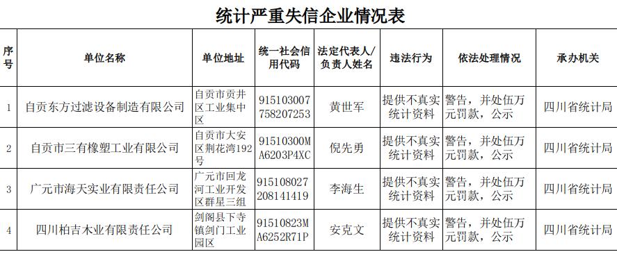 统计失信企业公示
