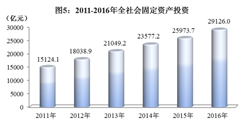 全年全社会固定资产投资29126.0亿元,比上年增长12.1%,其中固定资产投资(不含农户)28229.8亿元,增长13.1%。