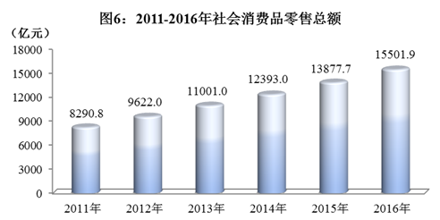 全年社会消费品零售总额15501.9亿元,比上年增长11.7%。