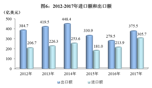 以美元计价,2017年四川实现货物贸易进出口总值681.2亿美元,增长38.2%。其中,出口375.5亿美元,增长34.4%;进口305.7亿美元,增长43.1%。