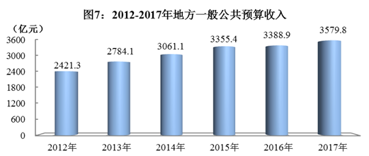 全年地方一般公共预算收入3579.8亿元,比上年增长9.5%,其中税收收入2430.0亿元,增长10.7%。一般公共预算支出8686.1亿元,增长10.8%。