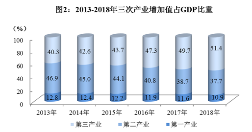 经国家统计局审定,全年实现地区生产总值(GDP)40678.1亿元,按可比价格计算,比上年增长8.0%。其中,第一产业增加值4426.7亿元,增长3.6%;第二产业增加值15322.7亿元,增长7.5%;第三产业增加值20928.7亿元,增长9.4%。三次产业对经济增长的贡献率分别为5.1%、41.4%和53.5%。人均地区生产总值48883元,增长7.4%。三次产业结构由上年的11.6:38.7:49.7调整为10.9:37.7:51.4。