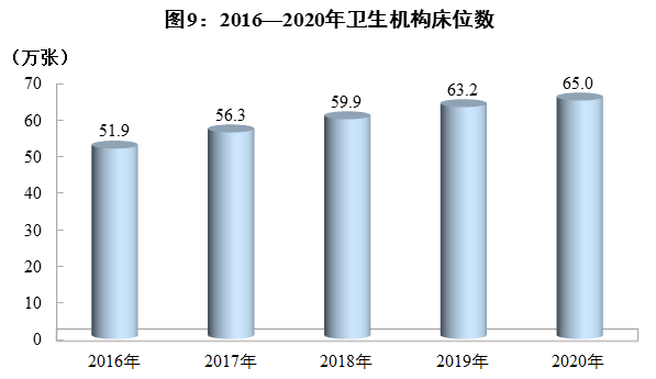 年末全省医疗卫生机构82793个,其中医院2435个(民营医院1745个),基层医疗卫生机构79491个;医疗卫生机构床位65.0万张,卫生技术人员63.3万人,其中执业医师19.6万人,执业助理医师4.0万人,注册护士28.6万人。妇幼保健机构202个,执业医师和执业助理医师0.8万人,注册护士1.2万人;乡镇卫生院4284个,执业医师和执业助理医师3.7万人,注册护士3.3万人。