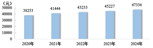 102020~2024年城镇居民人均可支配收入