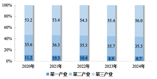 22020~2024年三次产业增加值占地区生产总值的比重