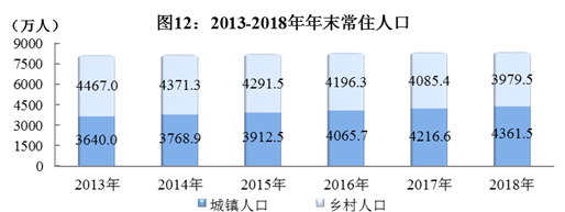 根据2018年全国人口变动情况抽样调查资料测算,全年出生人口92万人,人口出生率11.05‰;死亡人口58.3万人,人口死亡率7.01‰;人口自然增长率4.04‰。年末常住人口8341万人,比上年末增加39万人,其中城镇人口4361.5万人,乡村人口3979.5万人。常住人口城镇化率52.29%,比上年末提高1.5个百分点。