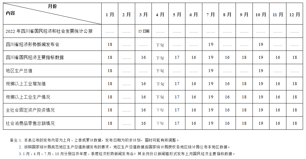 2023年四川省主要统计信息数据发布日程